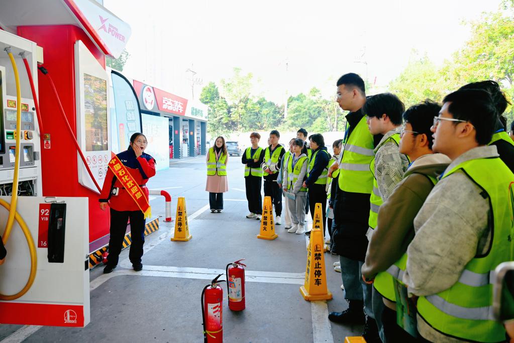 活动中,企业工作人员系统介绍了中国石化的企业发展历程与多元化经营模式。同学们实地走访了加油区、加氢区、易捷便利店、“爱心驿站”及党群服务中心等功能区域,全面感知中石化在能源服务、便民惠民与基层党建等方面的综合布局。在油品分辨环节,同学们通过观察、闻味等方式,结合所学专业知识现场辨别油品优劣,在实践中加深了对理论知识的理解。