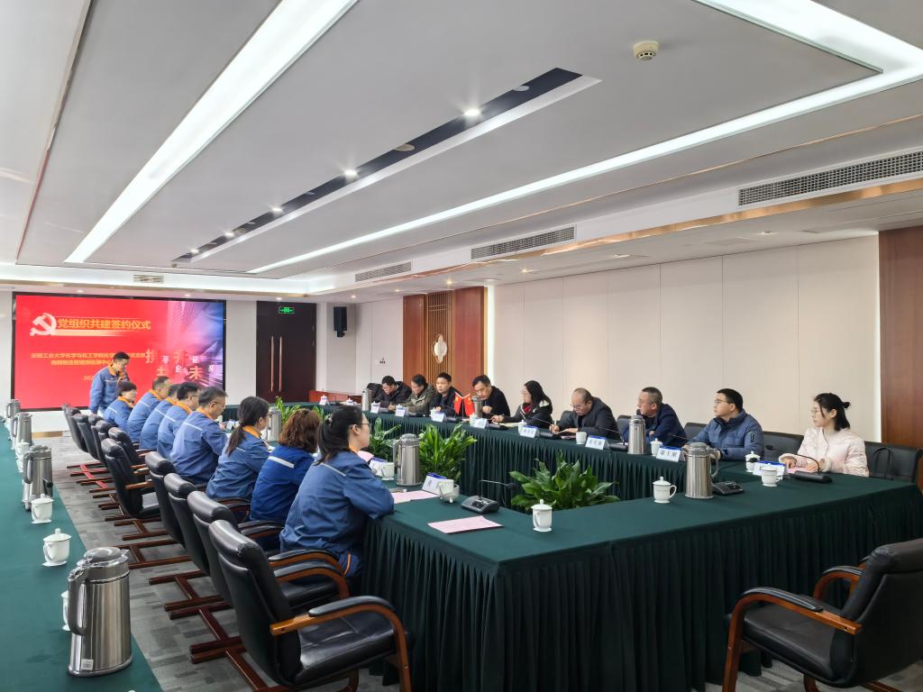 马振羽致欢迎辞,对黄宇弦一行的到来表示热烈欢迎。梅钢制造部检测中心常务副主任薄炜从五个方面详细介绍了此次共建实施方案,内容包括开展联合党组织生活会、联合党内主题实践活动、“煤焦分析”专题研讨、“煤焦分析”课程专家座谈、联合主题党课等特色项目,旨在通过校企产学研深度融合,实现资源共享、优势互补、共同提升与协同发展。会上,化学工程系党支部书记柯清平与检测中心党支部书记汪掌初共同签署共建协议,并为双方结对人员颁发项目战表。