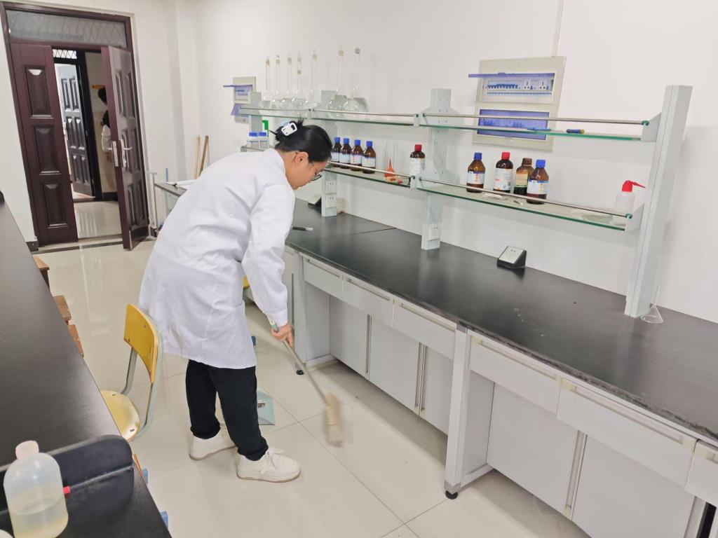 在清扫过程中,志愿者们按照分配的任务进行打扫,在负责人的分工下,仔细擦拭实验仪器、整理实验器材,认真打扫实验台及地面,不放过任何死角,对实验室进行了全面有序的大扫除。在这个过程中,志愿者们展现出了极高的热情和工作效率,用实际行动诠释了“不怕苦、不怕累”的精神。经过志愿者的共同努力,实验室焕然一新,每一处细节都被仔细打理,实验室的整体面貌得到了显著提升。