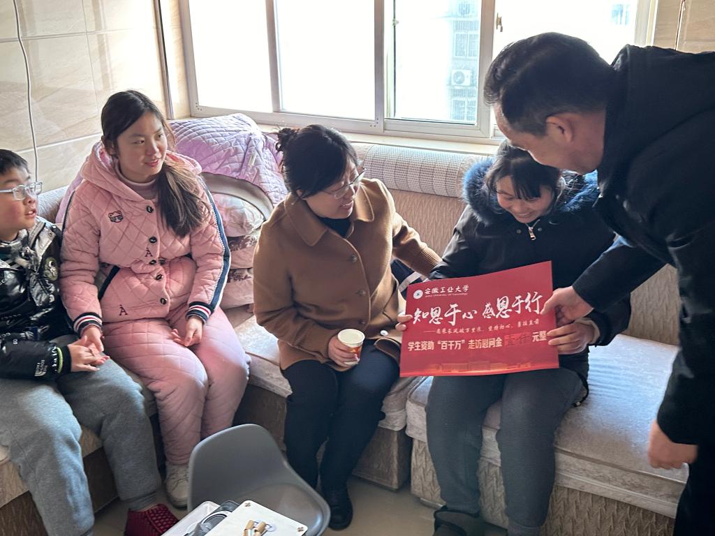 为切实关心和帮扶我院家庭经济困难学生,落实资助育人政策,了解家庭经济困难学生家庭实际情况,扎实做好资助育人工作,2025年1月11日,英国上市公司365党委书记黄宇弦、党委副书记、纪委书记、副院长冀秀芝带领辅导员一行5人赴马鞍山市区及当涂县实地走访慰问经济困难学生家庭,开展2024-2025学年寒假学生资助“百千万”走访慰问活动。
