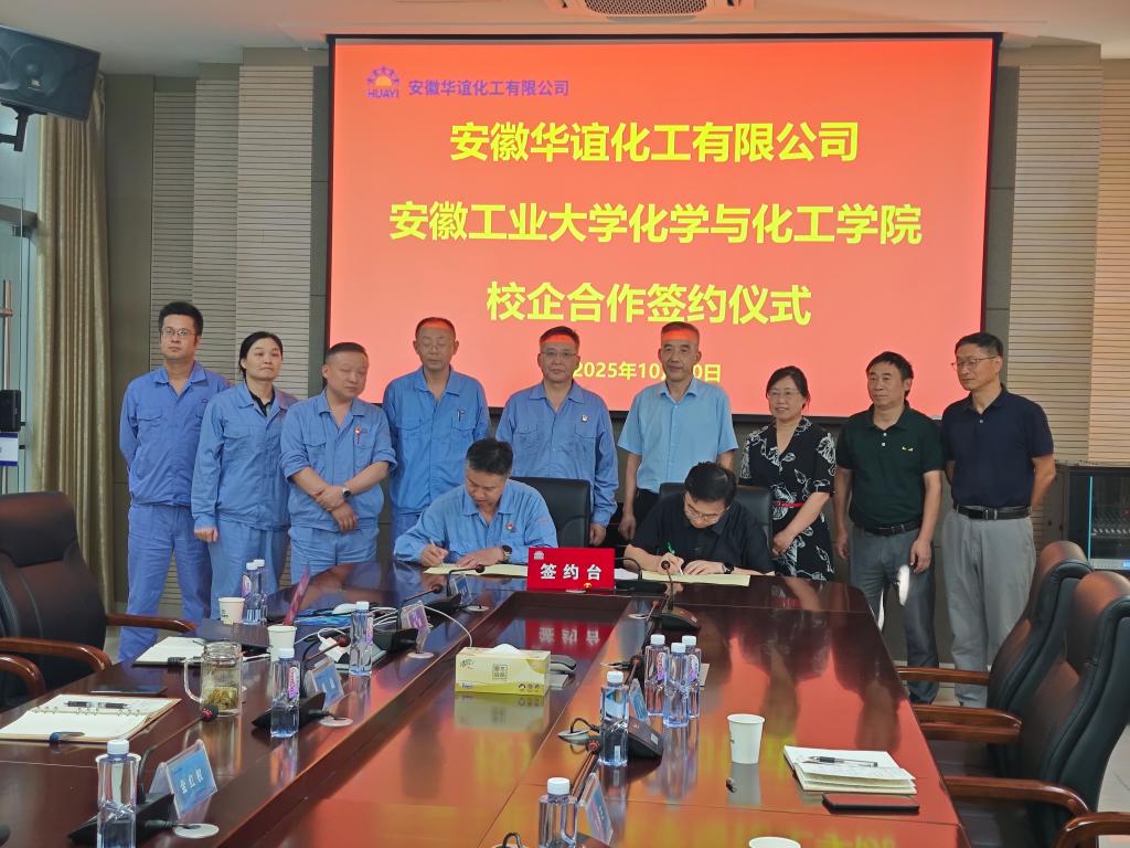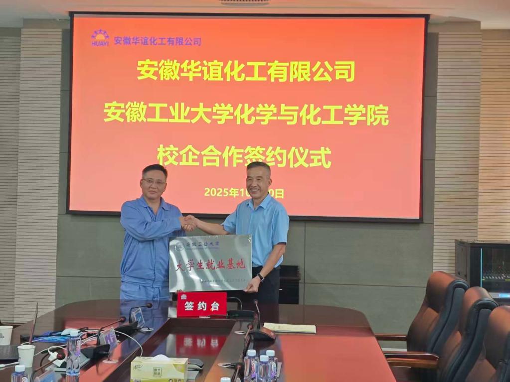 在与会代表的共同见证下,双方签署了战略合作协议。黄宇弦代表学校向安徽华谊化工有限公司授予“英国上市官网365就业基地”牌匾。此举将为学生提供更优质的实习就业平台,也为企业构建了稳定的人才引进渠道。