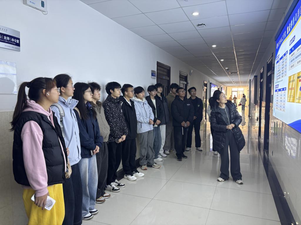 参观后,同学们来到学院文化长廊。老师们依托展板、实物模型及历史照片,生动讲解了学院的发展历程与重要科研成果。同时向同学们介绍了国际交流合作、学生科创比赛获奖及毕业生就业升学情况,进一步拓宽了新生对化学化工学科前景的认知视野,增强新生对大学学习与科研探索期待与信心。
